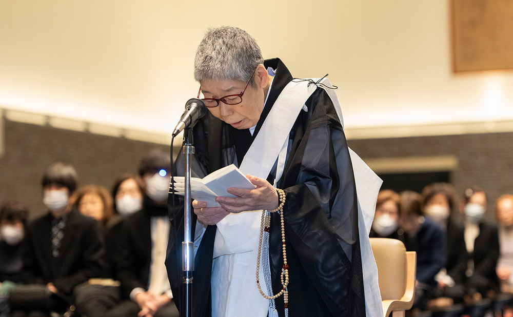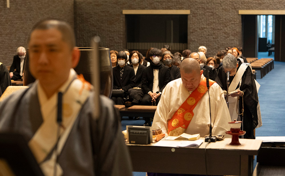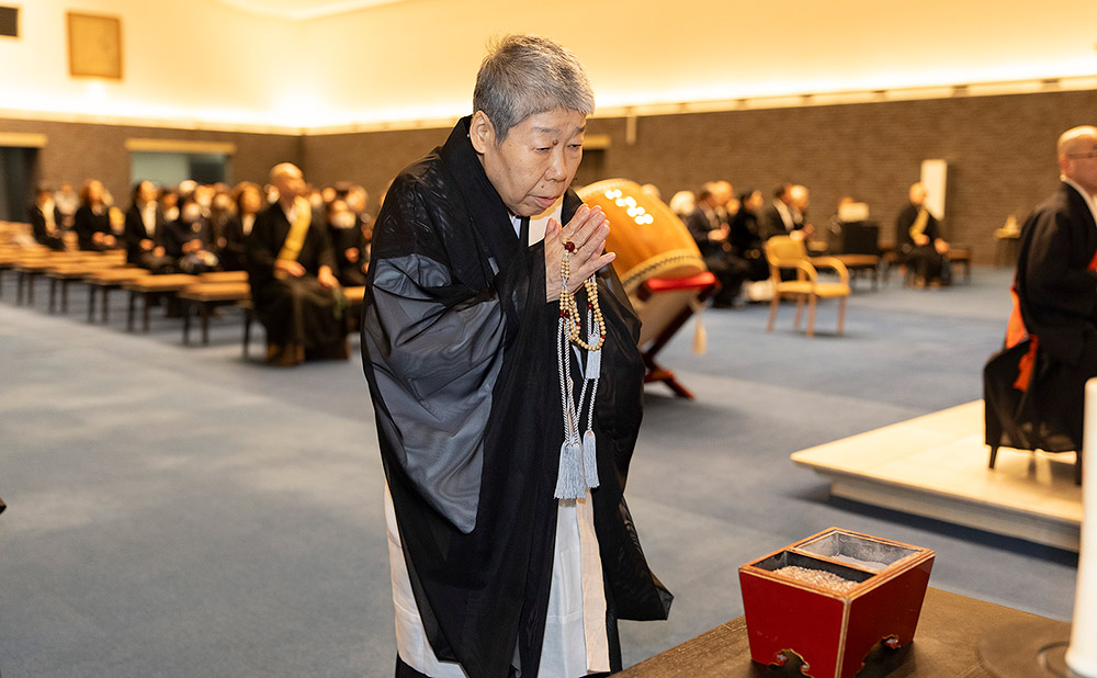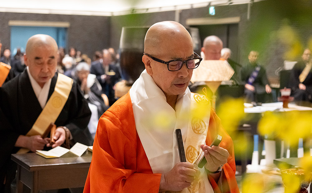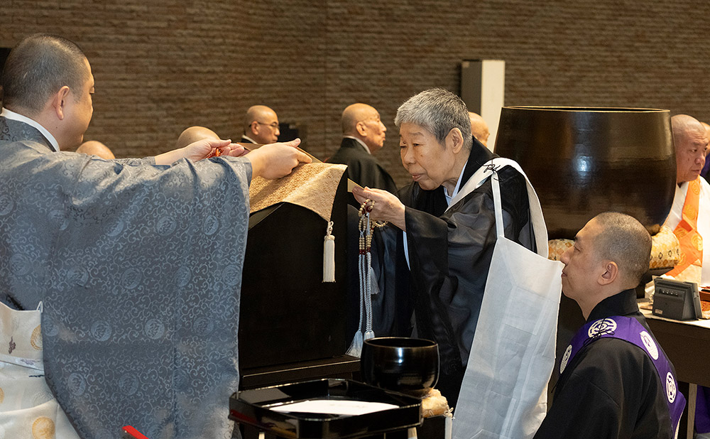得度式終了後は、一階ご供養場にて披露宴が催され、多くの参列者が集い、和やかな祝賀のひとときとなりました。