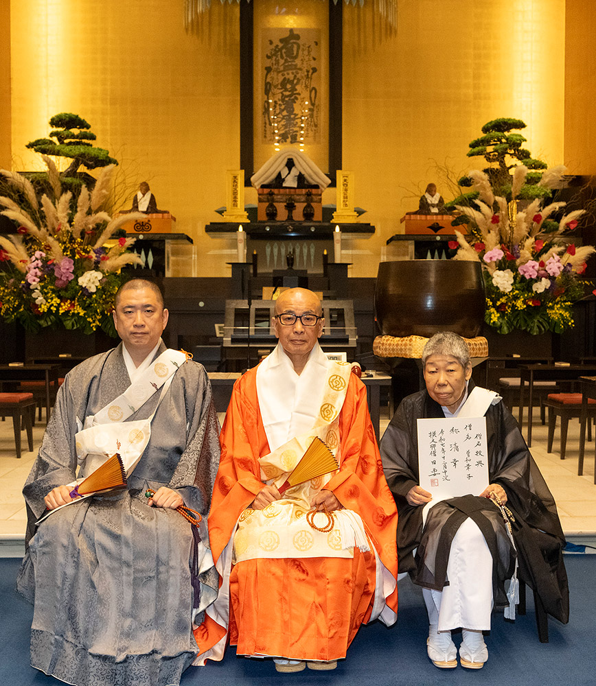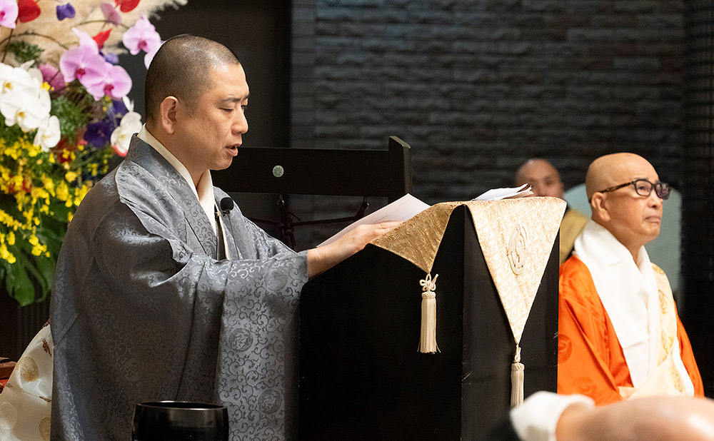 お誓いの言葉では、これまでの歩みを振り返り、初心を忘れず、周囲の方々のご恩に報いるため、行学二道に邁進していく決意を述べられました。